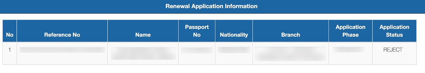 Saya menerima keputusan yang ditolak melalui e-mel disebabkan dokumen tidak lengkap. Alhamdulillah kami diberi masa sebelum tarikh tamat tempoh pas lawatan semuanya berjalan lancar.