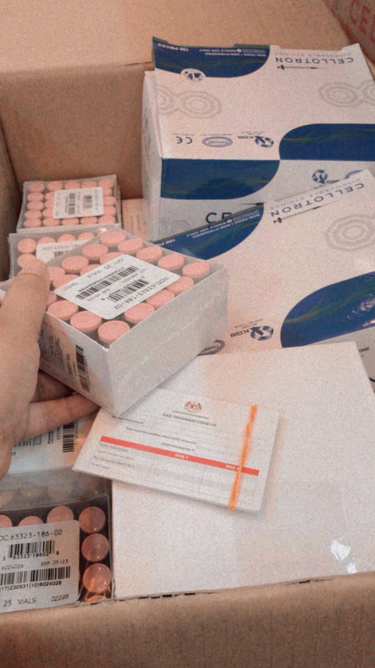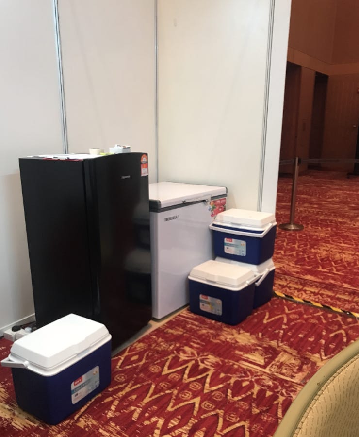 Selepas kami diberi training, beberapa hari kemudian, kami akan bertugas di KLCC Convention Centre. Disana Ekin ditugas mengurus vaksin Pfizer. Tugas yang diberi menjaga vaksin Pfizer. Vaksin Pfizer ni suhu kena maintain 2-7'C supaya vaksin tidak rosak. Setiap vaksin sampai Ekin akan rekod kuantiti vaksin dan suhu setiap masa.
